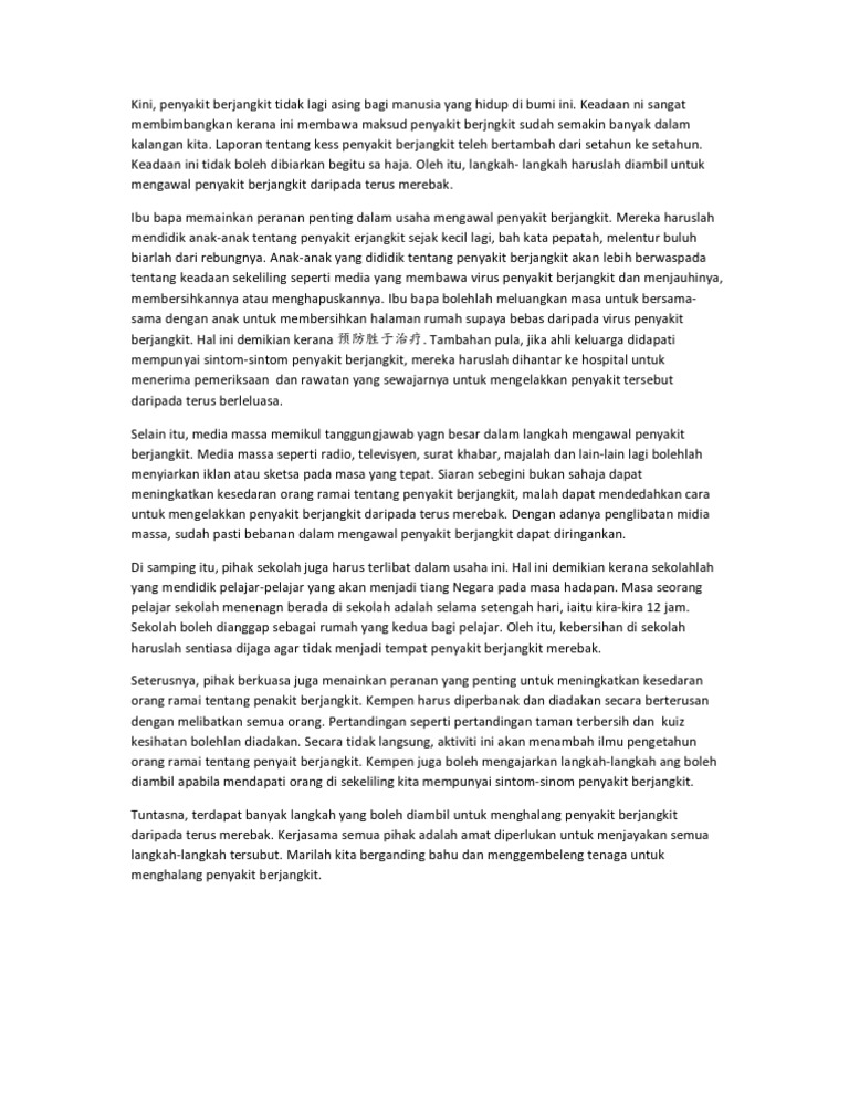 Contoh Karangan Penularan Penyakit Berjangkit Yang Berbahaya Stpm